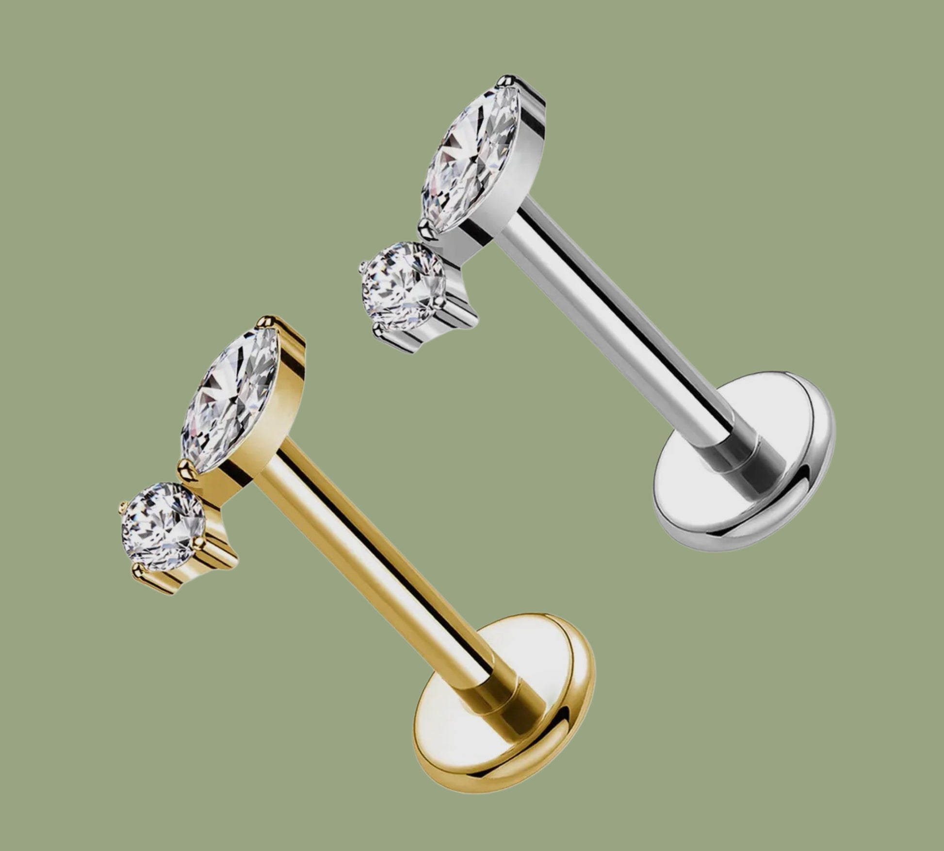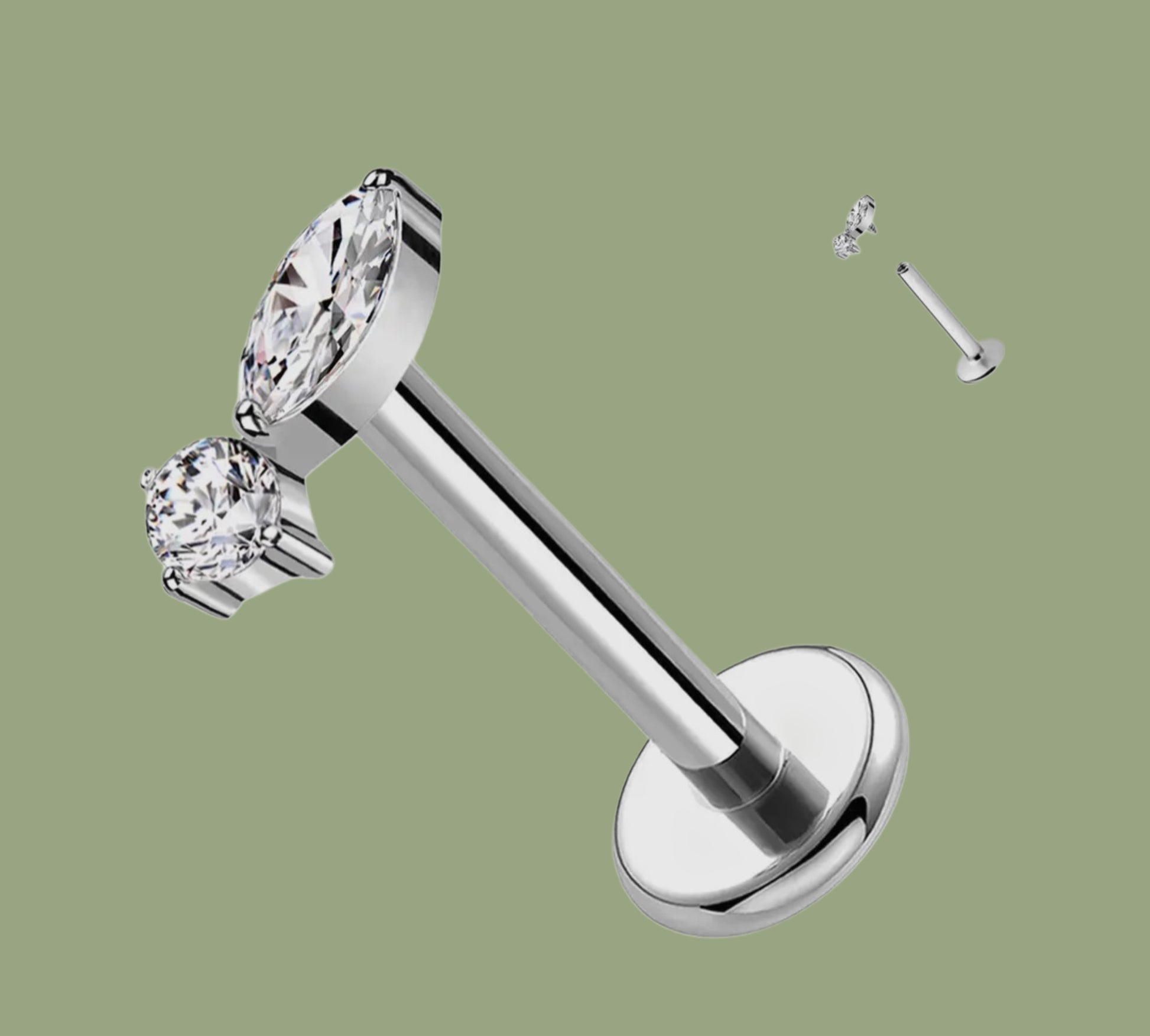Gioiello con doppio zircone, chiusura a filettatura interna.