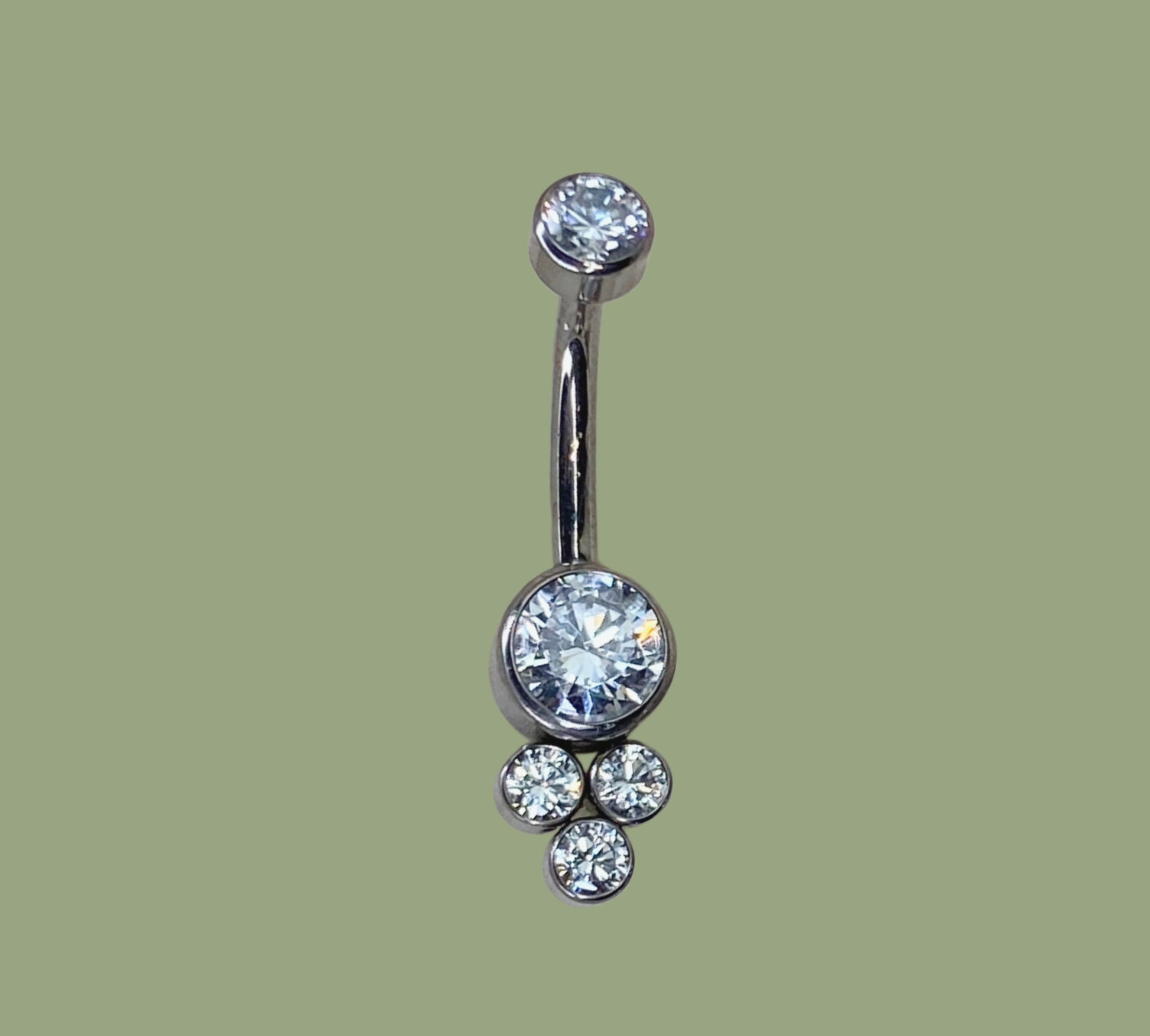 Gioiello per ombelico con cubic zirconia, chiusura a filettatura interna.