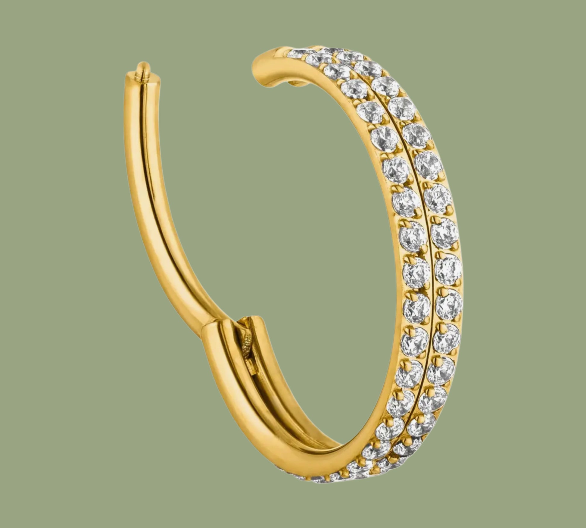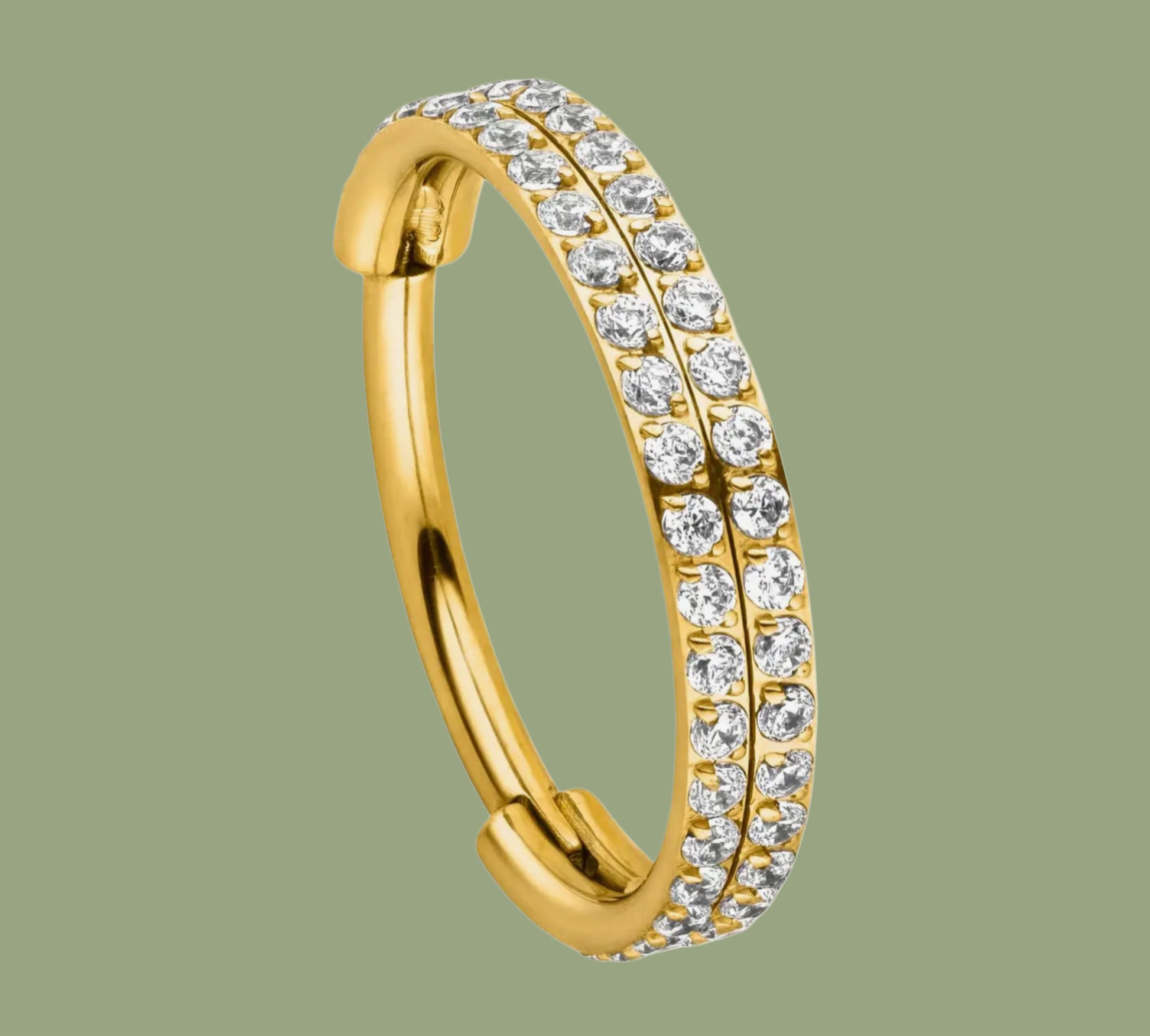 Ring con doppia fascia di zirconi luminosi con chiusura a clicker.