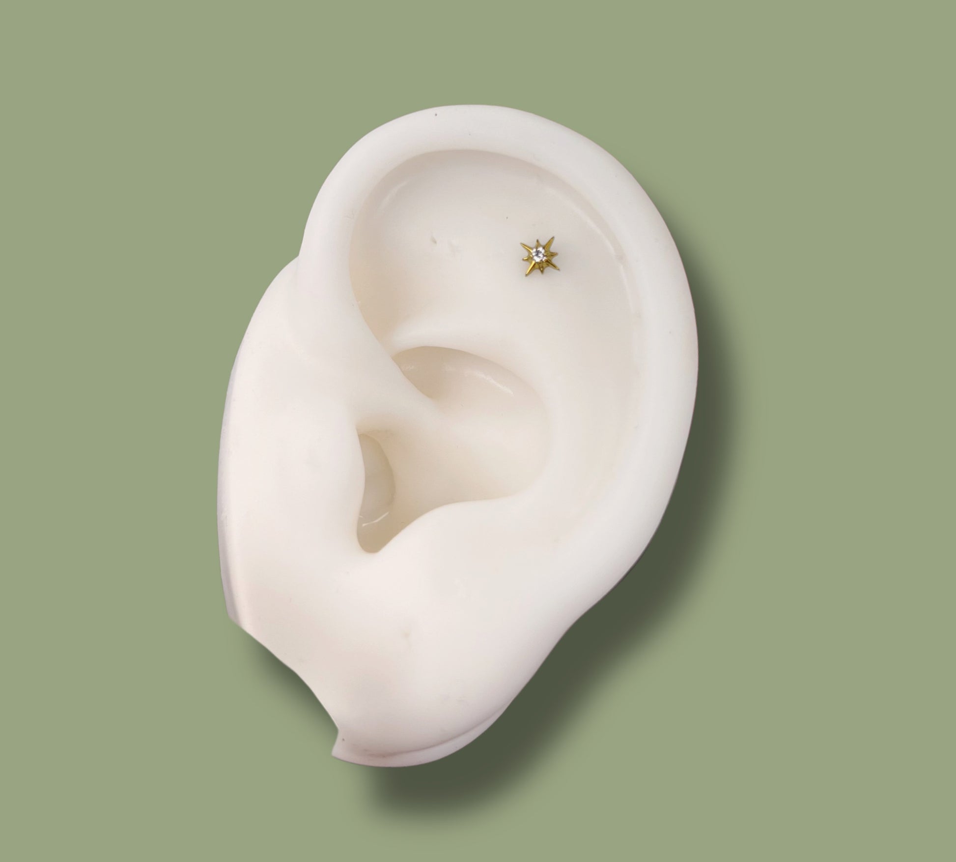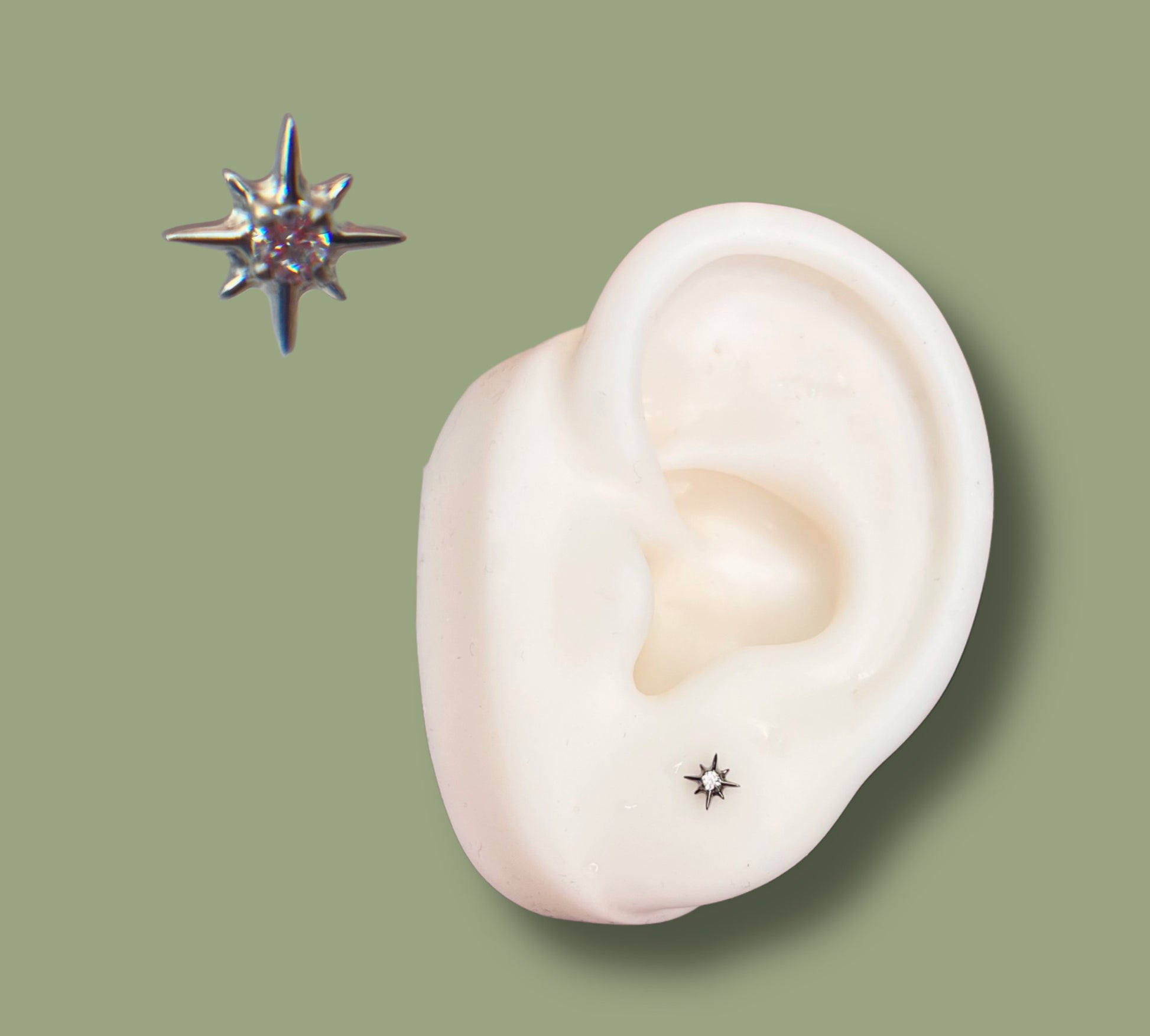 Stella abracadabra con zircone, chiusura a filettatura interna.